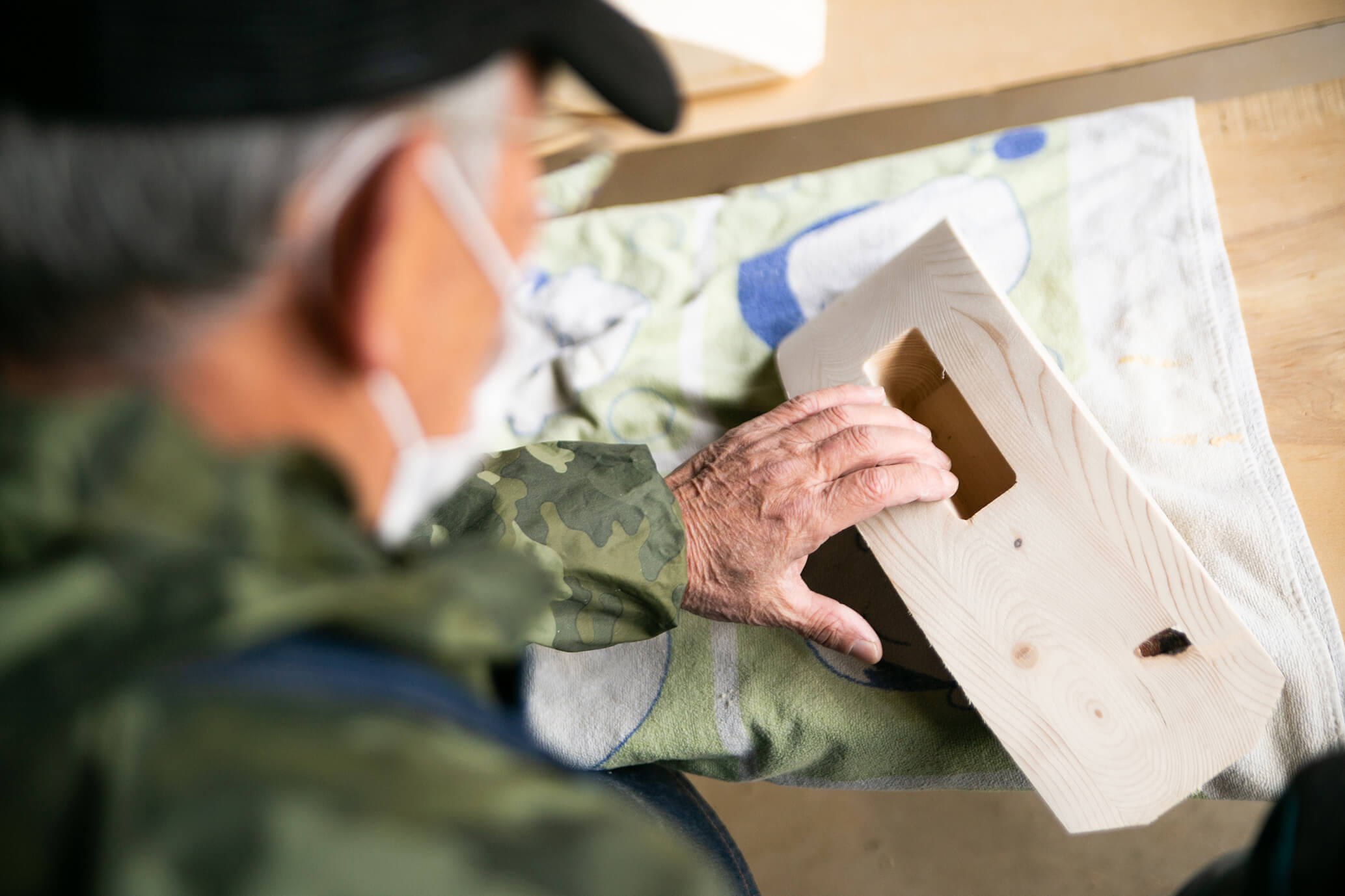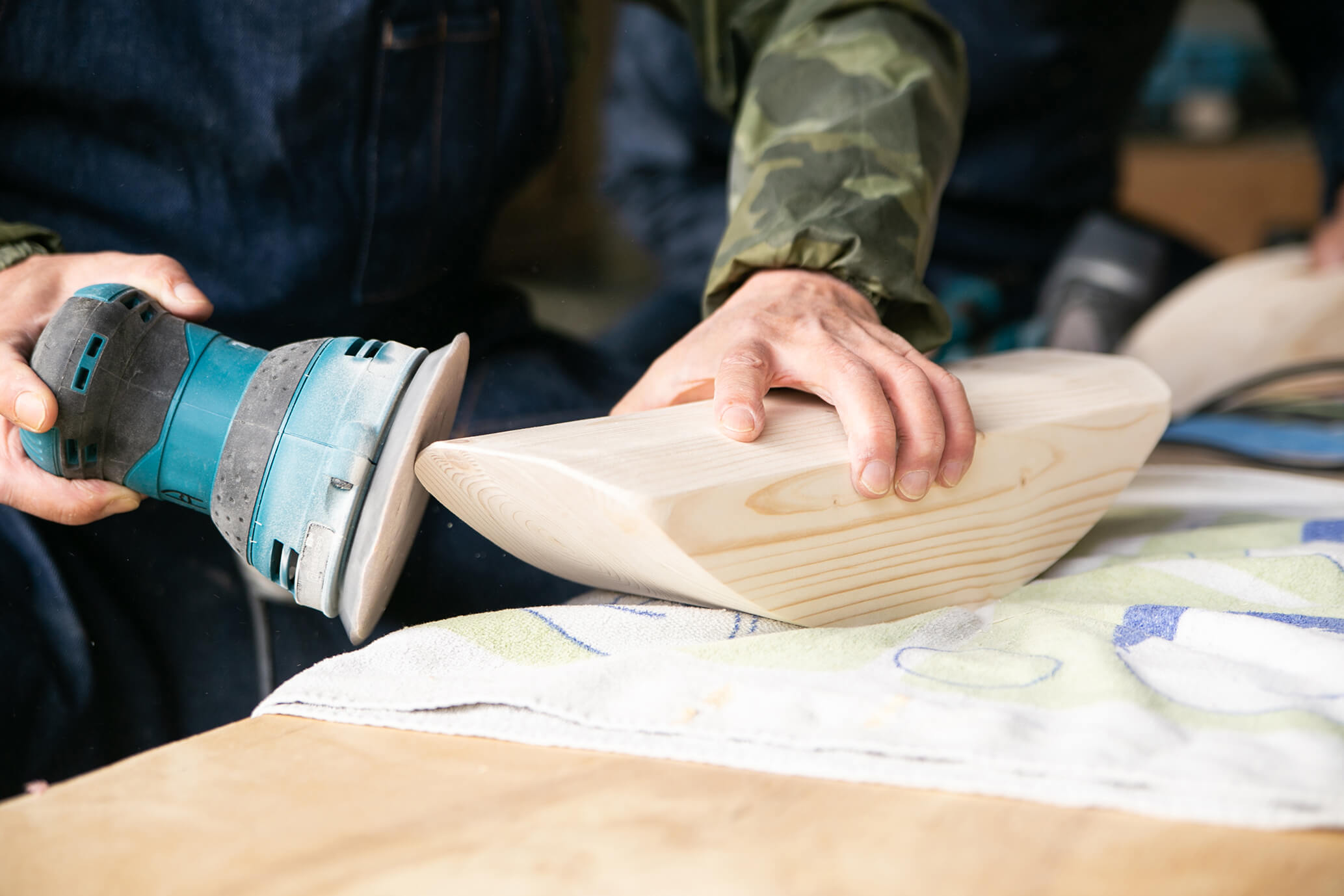 足踏み健康器具の制作過程、商品、仕様イメージで一つひとつがハンドメイドによるぬくもりも感じられるよう意識しました。